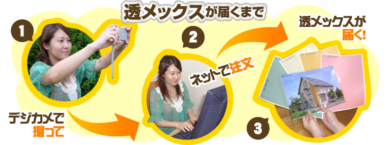 透メックスとはデジカメで物件の外観を撮影し、パソコン操作により外壁だけを透明にしたA4サイズのシートの事です。